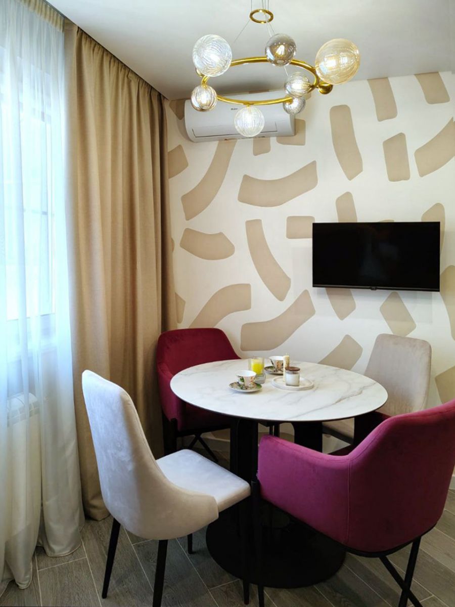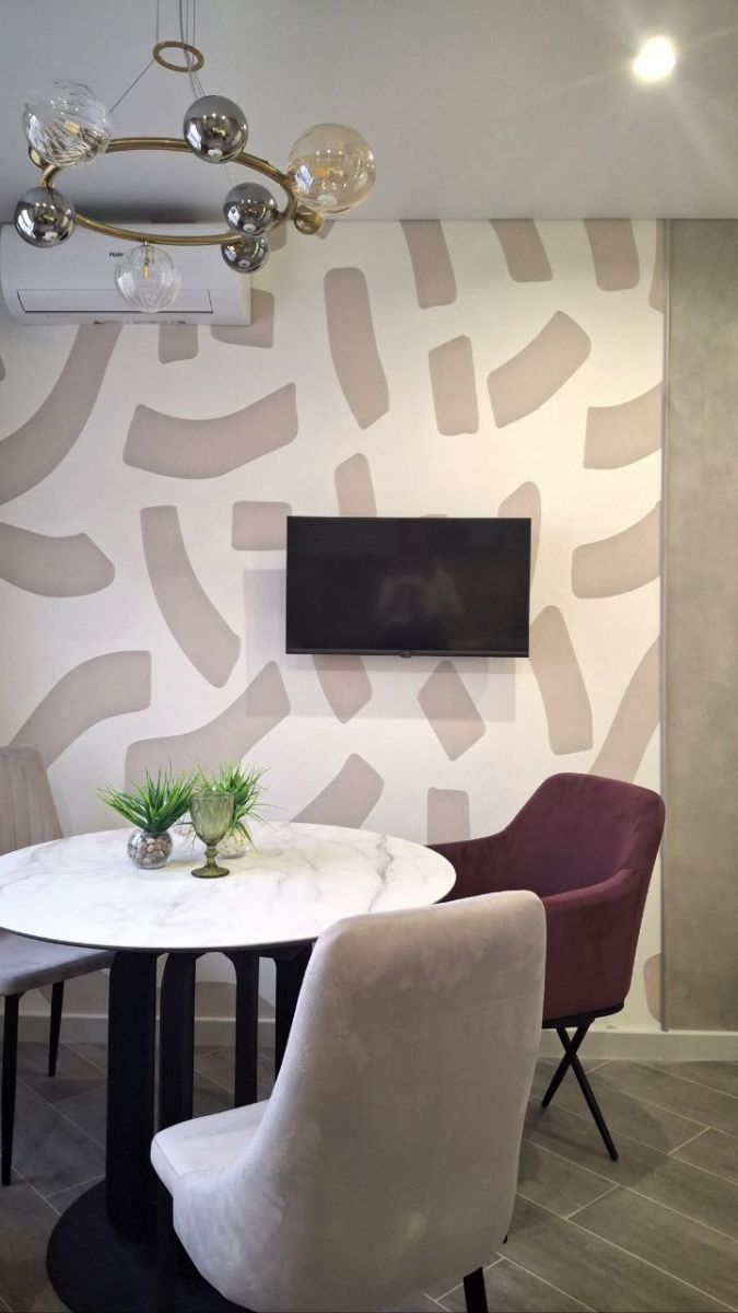 Друзья, сегодня мы хотим поделиться с вами удачным примером того, как дизайнер Дарья Жаворонкова с помощью наших бесшовных обоев ECO c небанальной геометрией преобразила обеденную зону!