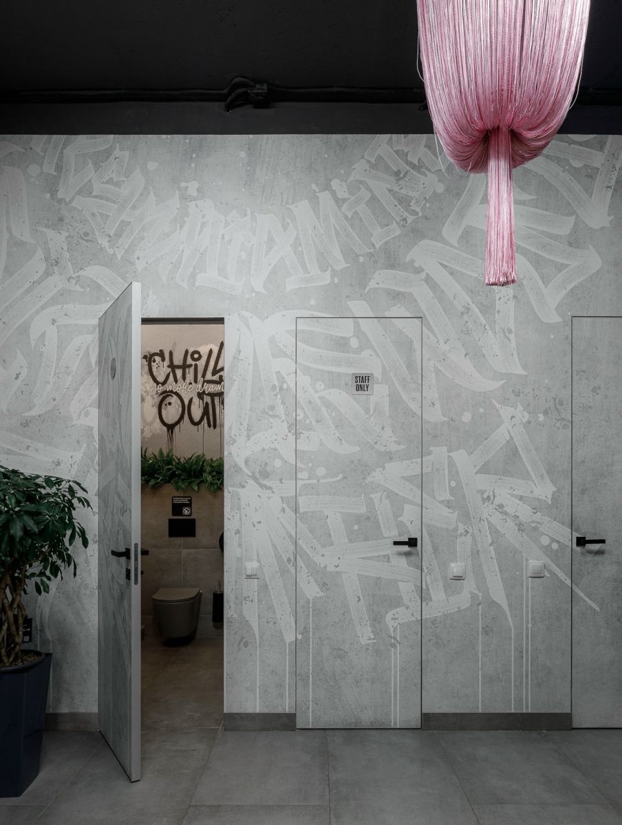 На первый взгляд, ничего. Однако наши клиенты нашли идеальное решение! Они оформили свой цветочный салон бесшовными обоями ECO с изображением граффити (Арт. 35579, Арт. 35620) из нашей дизайнерской коллекции «Letter», выбрав сразу два трендовых дизайна в актуальном сером оттенке.