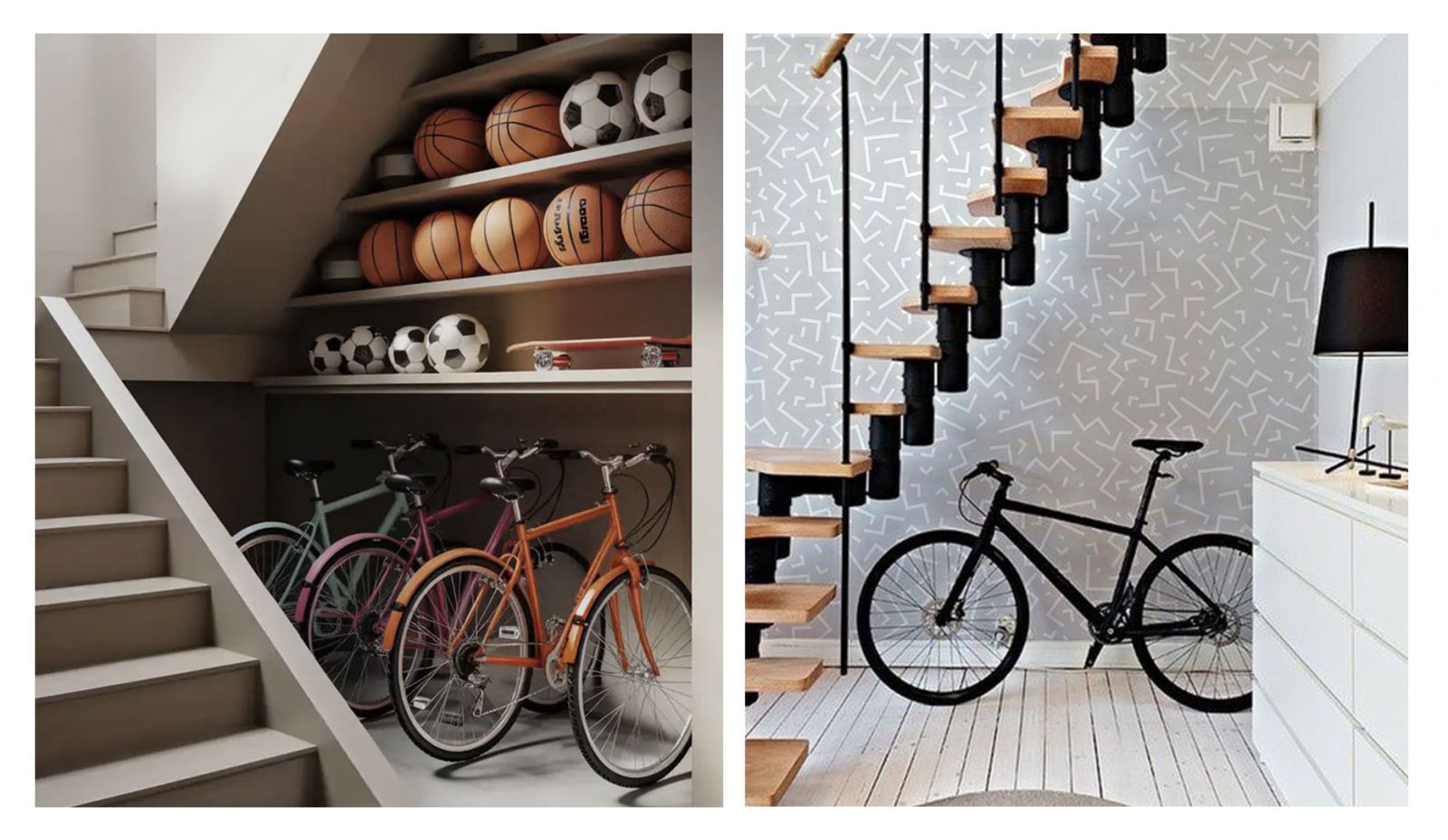 Бывает такое, что в доме катастрофически не хватает места для хранения: коляски, которые постоянно приходится куда-то двигать, велосипеды, занимающие полкомнаты, лыжи, коробки, инструменты – глаз дергается. Для коляски положите специальный коврик, который будет впитывать грязь и влагу после прогулок. А для велосипеда установите держатель, чтобы он не заваливался набок.