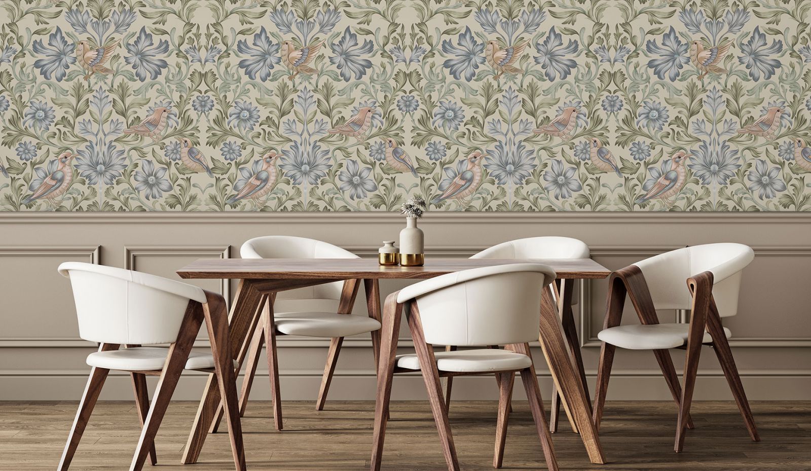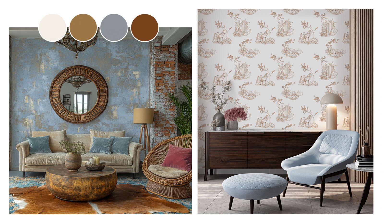 Для большинства современных дизайнеров такое понятие, как «чистый стиль», уже давно не актуально и живёт где-то на страницах учебников по классическому дизайну. Это легко можно сказать как о дизайне интерьеров, так и об одежде. Изо дня в день мы видим, как в пару к легкому летнему платью девушки выбирают удобные кроссовки, а не туфли-лодочки. Или строгий деловой костюм бизнес-леди дополняют массивные пластиковые серьги и браслеты. Люди прибегают к таким приёмам комбинации, смешения, потому что им так комфортно и потому что они хотят максимально точно выразить себя. То же самое и в дизайне интерьеров. Хочется создать в квартире максимально модное и технологичное пространство, но душа просит покоя и единения с природой? Почему бы и нет? Светлые стены, лаконичные мебельные гарнитуры, современная бытовая техника вполне могут сочетаться с обоями, на которых изображена цветущая сакура или вечноцветущие тропические заросли. Кстати, обои и фрески – один из самых простых, но действенных способов выражения того или иного стиля. Даже классики. Далеко не у каждого есть возможность и желание оформлять свои стены настоящей лепниной, как в европейских дворцах. Но можно поклеить на стену обои с изображением этих самых дворцовых стен.