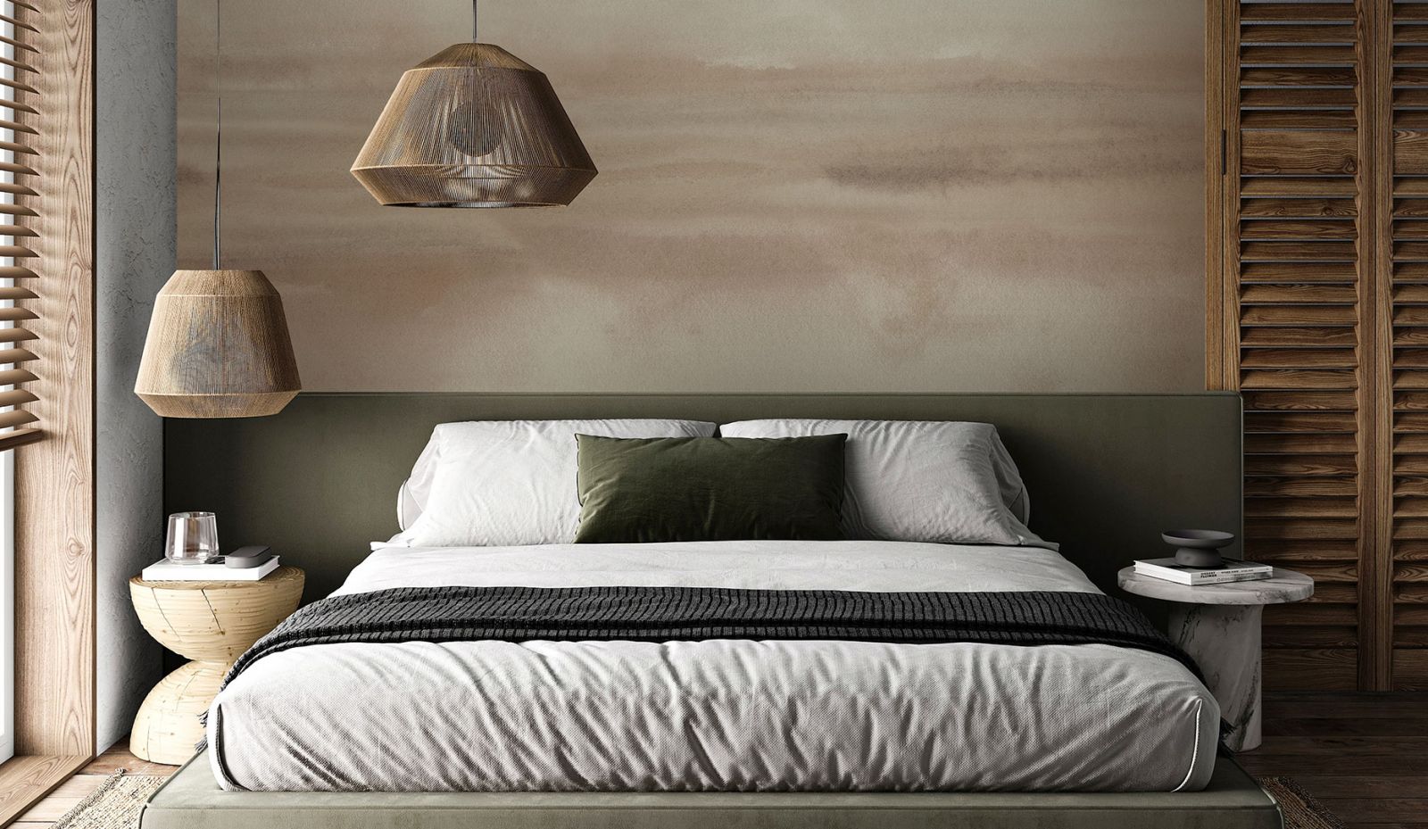 Сочетание уютной скандинавской прохлады с японской мудростью послужило началом зарождения нового смешанного стиля Джапанди. Его принципы – простота, лёгкость и продуманность. Светлые оттенки в мебели, отделке стен. Максимальное применение экологичных материалов и природной цветовой гаммы. Как можно больше света (искусственного и естественного освещения). Также не прячем окна за висящими шторами, можно использовать бумажные, бамбуковые жалюзи.