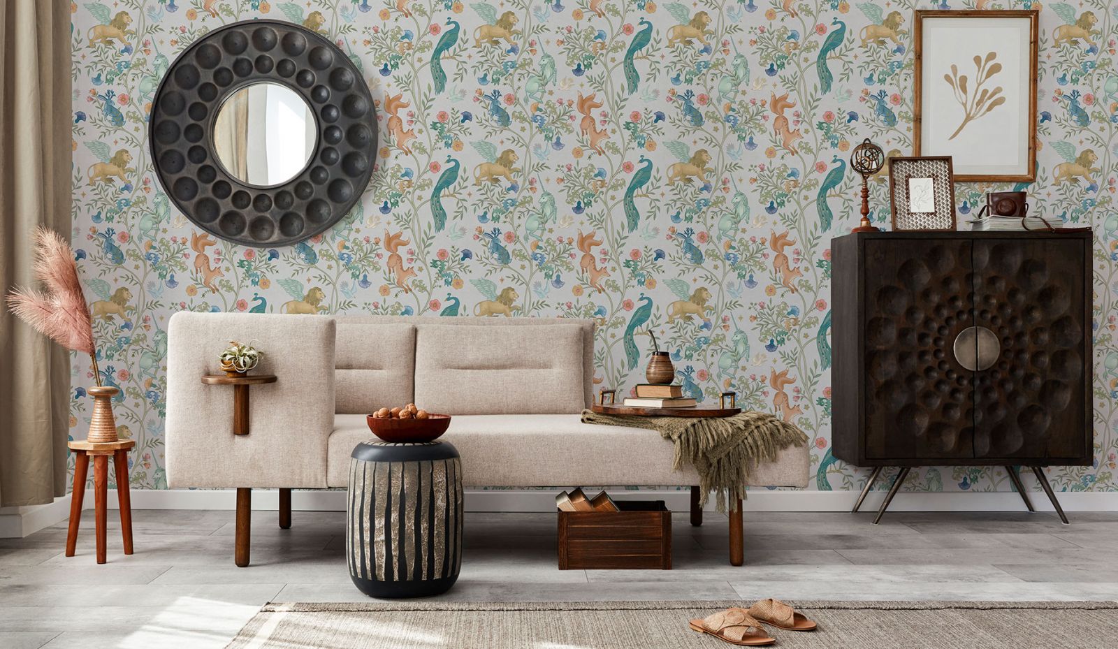 Стены – первое, на что мы обращаем внимание, зайдя в помещение. В винтажном интерьере они могут быть как нейтральными (матовая покраска в светлых пастельных тонах), так и стилизованные. В случае, если вы решили оформить стены стильными обоями в стиле винтаж, стоит обратить внимание на дизайнерские коллекции компании «ОРТОГРАФ»: мифические создания, как на старинных средневековых гобеленах, ремесленные мотивы, отголоски славянских былин и преданий, изящные растительные узоры и дамаски в сочетании с лаконичной геометрией.  Эти винтажные коллекции придадут вашим стенам утончённый стиль, особый шарм и элегантность. Ещё одна особенность этих дизайнерских обоев в том, что их можно выполнить единым полотном, совершенно без стыков. Вам не придётся часами подгонять полотна по узору и делать аккуратный шов.